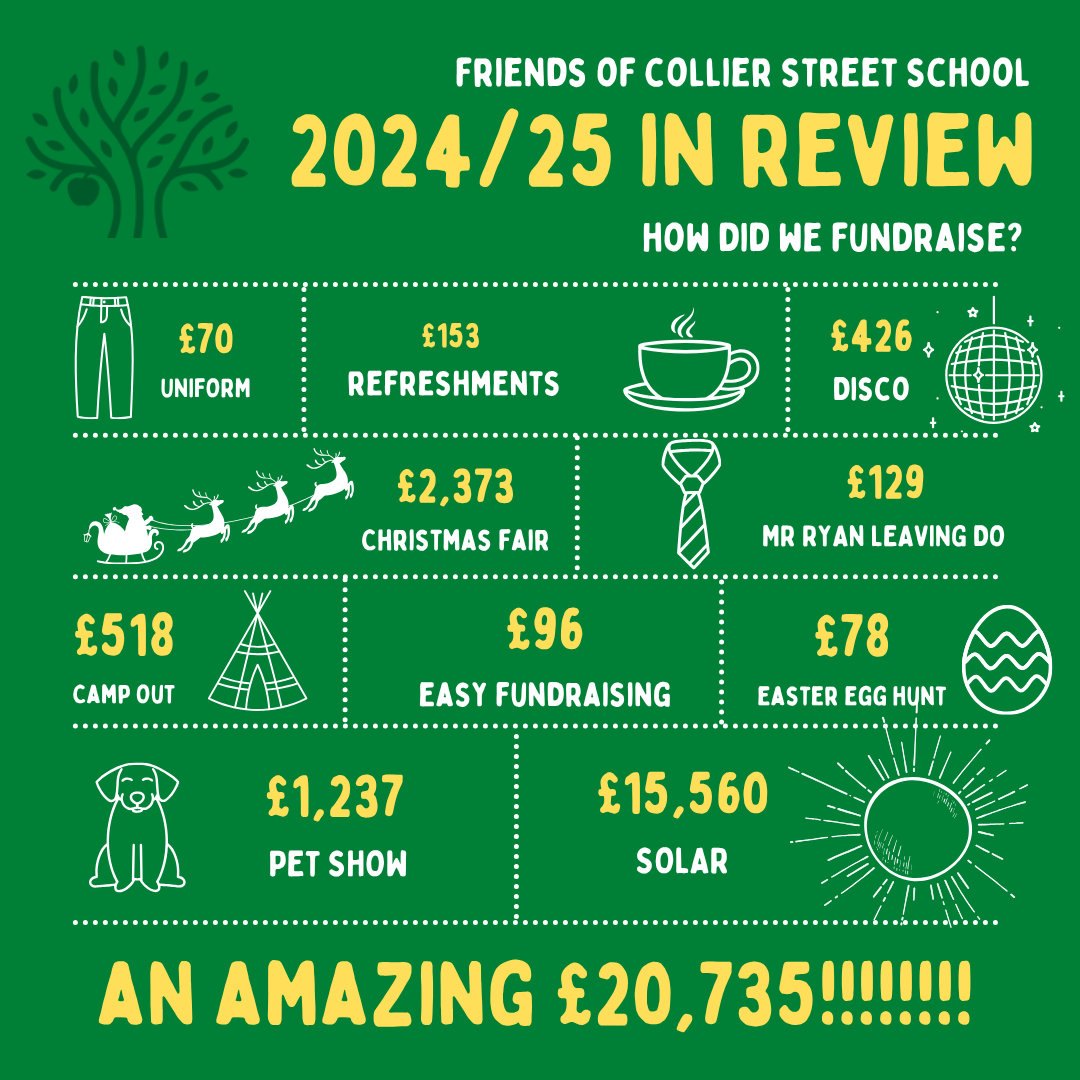 - Follow our Facebook Page – search Friends of Collier Street School and look for our logo